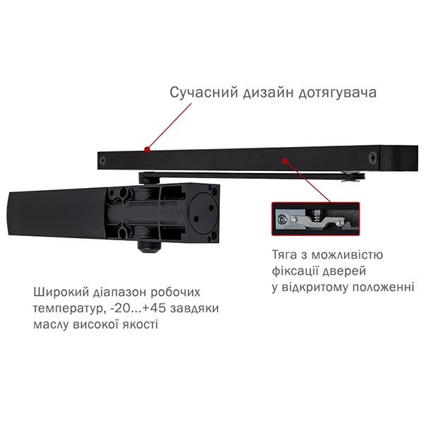 Также следует понимать дополнительные функции Вам нужны. Кроме стандартного дотягивания дверного полотна, более дорогие модели имеют функцию фиксации в открытом положении. Это создает дополнительное удобство, ведь можно зафиксировать дверь в открытом состоянии. Существуют нюансы и относительно места установки. К примеру, если мешает стена, то нужно ставить монтажную пластину или доводчик со скользящей тягой - он выглядит гораздо эстетичнее, но ставят его в основном на легкие двери.