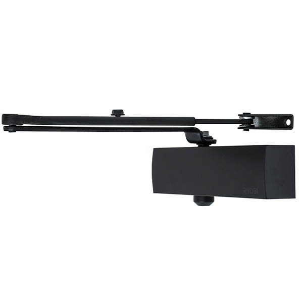 Продукция японского производителя RYOBI по праву признана во всем мире благодаря своему отличному качеству. Данная модель RYOBI D-1200 STD устанавливается накладным монтажом на легкие дверные полотна массой до 80 кг и шириной до 1100 мм. Гидравлический привод обеспечивает четкую работу доводчика с углом открывания до 180°. Непосредственно на корпусе есть возможность регулировать основную скорость и скорость захлопывания. Благодаря этому можно достичь индивидуальной настройки закрытия дверей так как Вам нужно. Особенностью доводчиков RYOBI является специальное термоконстантное масло. Оно обеспечивает стабильную работу даже при большом перепаде температур. Вообще рабочая температура варьируется в диапазоне от -20 до + 45°С. RYOBI D-1200 STD может быть установлен на лево и правосторонние двери с возможностью открывания как внутрь так и наружу. В данной комплектации присутствует стандартная тяга без фиксации двери в открытом состоянии. При необходимости возможно отдельно заказать тягу с фиксацией. В цвете “серый антрацит” лучше будет дополнять двери подобных темных оттенков для того, чтобы максимально избежать контрастов и не привлекать лишнего внимания.