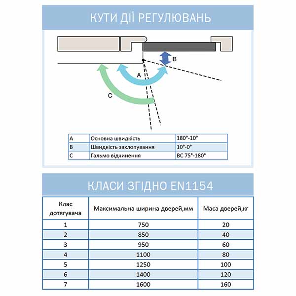 | Тип тяги доводчика | стандартная | |