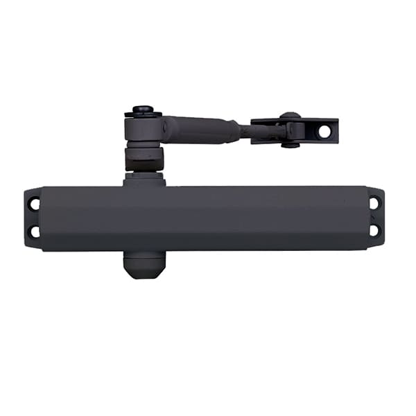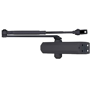 Продукция японского производителя RYOBI по праву признана во всем мире благодаря своему отличному качеству. Данная модель RYOBI D-2005V BC STD устанавливается накладным монтажом на дверные полотна массой до 100 кг и шириной до 1250 мм. Гидравлический привод обеспечивает четкую работу доводчика с углом открывания до 180°. Непосредственно на корпусе есть возможность регулировать основную скорость в пределах 180°-10°, скорость захлопывания - 10°-0° и тормоз открывания - 75°-80°. Данная функция защищает дверное полотно от удара о стену и вырывания тяги доводчика. Благодаря этому можно достичь индивидуальной настройки закрытия дверей так как Вам нужно. Особенностью доводчиков RYOBI является специальное термоконстантное масло. Оно обеспечивает стабильную работу даже при большом перепаде температур. Вообще рабочая температура варьируется в диапазоне от -20 до +45° С. D-2005V BC STD может быть установлен на лево и правосторонние двери с возможностью открывания как внутрь так и наружу. В данной комплектации присутствует стандартная тяга без фиксации дверного полотна в открытом положении. Однако данный доводчик сертифицирован для использования с противопожарными дверями. В цвете “серый антрацит” лучше будет дополнять двери подобных темных оттенков для того, чтобы максимально избежать контрастов и не привлекать лишнего внимания.