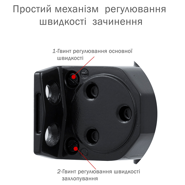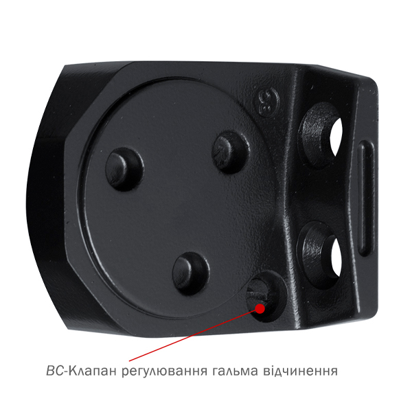 Гидравлический привод обеспечивает четкую работу доводчика с углом открывания до 180°. Непосредственно на корпусе есть возможность регулировать основную скорость в пределах 180°-10°, скорость захлопывания – 10°-0° и тормоз открывания – 75°-180°. Данная функция защищает дверное полотно от удара о стену и вырывания тяги доводчика. Благодаря этому можно достичь индивидуальной настройки закрытия дверей так как Вам нужно.