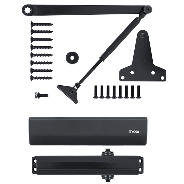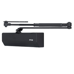 RYOBI D-2055V BC UNIV может быть установлен на лево и правосторонние двери с возможностью открывания как внутрь так и наружу.В данной комплектации присутствует стандартная тяга без фиксации дверного полотна в открытом положении. Однако данный доводчик сертифицирован для использования с противопожарными дверями.