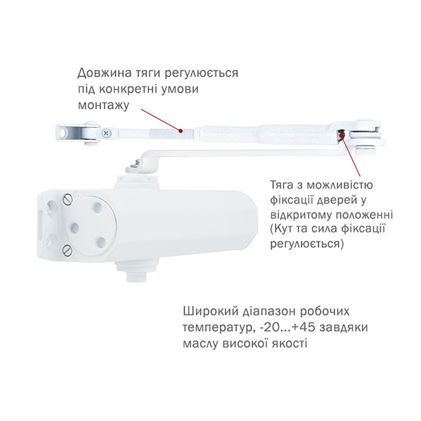 | Тип тяги доводчика | стандартная с фиксацией | |