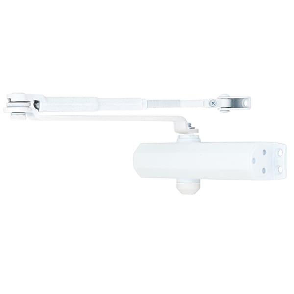Продукция японского производителя RYOBI по праву признана во всем мире благодаря своему отличному качеству. Данная модель RYOBI DS-2005V BC STD HO устанавливается накладным монтажом на дверные полотна массой до 100 кг и шириной до 1250 мм. Гидравлический привод обеспечивает четкую работу доводчика с углом открывания до 180°. Непосредственно на корпусе есть возможность регулировать основную скорость в пределах 180°-10°, скорость захлопывания - 10 ° -0 ° и тормоз открывания - 75 ° -180°. Данная функция защищает дверное полотно от удара о стену и вырывания тяги доводчика. Благодаря этому можно достичь индивидуальной настройки закрытия дверей так как Вам нужно. Особенность доводчиков RYOBI - специальное термоконстантное масло. Оно обеспечивает стабильную работу даже при большом перепаде температур. Вообще рабочая температура варьируется в диапазоне от -20°С до +45°С. RYOBI DS-2005V BC STD HO может быть установлен на лево и правосторонние двери с возможностью открывания как внутрь так и наружу. В данной комплектации присутствует стандартная тяга с фиксацией дверного полотна в открытом положении. Это дает возможность оставить двери открытыми для проветривания или для удобства пользования в коммерческих помещениях. В белом цвете лучше будет дополнять двери подобных светлых оттенков для того, чтобы максимально избежать контрастов и не привлекать лишнего внимания.