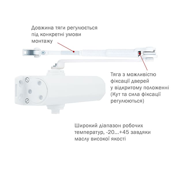 | Тип тяги доводчика | стандартная с фиксацией | |