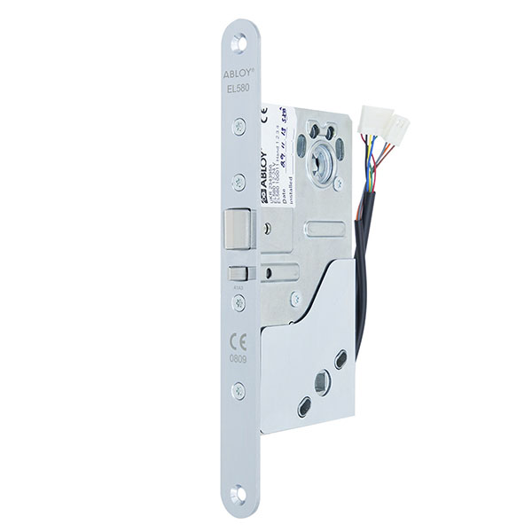 ABLOY EL 580 – это электромеханический соленоидный замок. Предназначен для использования в эвакуационных одно и двухстворчатых дверях и дверях аварийного выхода. Подходит для правой и левой двери со средней проходимостью людей в торговых/офисных помещениях, больницах, гостиницах, жилых домах и т.д. Управление снаружи осуществляется сердцевиной и электрическим импульсом, который дает устройство управления. Это означает, что с наружной стороны можно открыть дверь нажимной ручкой только после подачи электрического импульса. Например, это могут быть системы контроля доступа или удаленное устройство (реле времени, кодонаборная панель или кнопки). Блокировка ригелем и язычком осуществляется автоматически простым закрыванием дверей. С внутренней стороны открыть дверь можно с помощью нажатия на ручку, поэтому замок подходит для использования в системах антипаники. Управление также производится цилиндром финского типа или овальным скандинавским типом.