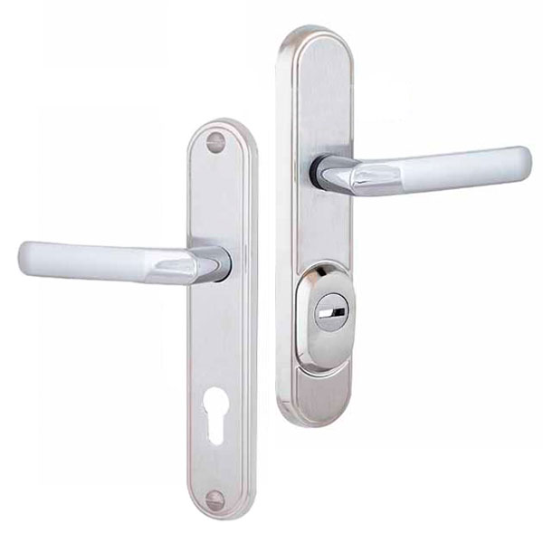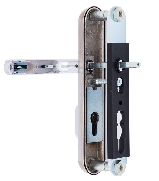 Взломостойкие ручки на планке с протектором чешского производства ROSTEX. Если у Вас возникает потребность надежно защитить замок и сердцевину, то эта модель сможет полностью удовлетворить ее. Ручки изготавливаются из прочной нержавеющей стали, планки в свою очередь изготавливаются из цинкового сплава. Внешне планки не видно отверстий для крепления, они находятся в середине и фиксируются с помощью двух мощных винтов М8. Сердцевина защищена протектором с закаленной стали и шайбой с отверстием под ключ из нержавеющей стали. Благодаря этому эта модель имеет высокий уровень защиты от высверливания, взлома и другой силовых методов взлома. Цветовой оттенок защищен специальным методом гальваники, что гарантирует его устойчивость к стиранию в течение 120 месяцев. Популярный цвет – хром матовый – прекрасно будет смотреться в помещении или комнате в серых тонах. Эта модель оснащена удобной нажимной частью с металлическим пружинным механизмом, благодаря чему ручки не будут провисать и расшатываться. При выборе обратите внимание на межосевое расстояние ручек и Вашего механизма замка. Данные ручки подходят только для механизмов замка с межосевым расстоянием 85 мм. При необходимости монтажа фурнитуры на широкие двери рекомендуем приобрести соответствующий удлинительный набор.