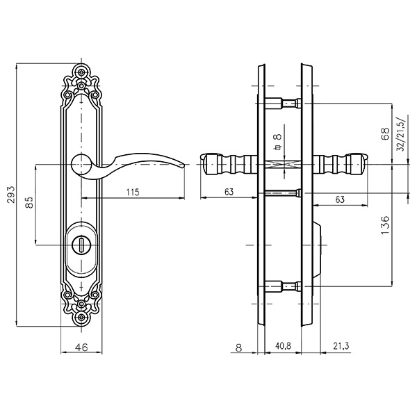 Модель ручки на планці ROSTEX Ozdobna