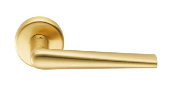 Итальянские ручки на круглой розетте COLOMBO ценят во всем мире за практичность и богатство выбора. Достигается это за счет использования лучших материалов и привлечения известных дизайнеров. Данная модель изготовлена ​​из латуни. Покрыта специальным гальваническим покрытием, обеспечивающим долговечность и устойчивость к мелким механическим повреждениям. Ручки в матовом золотом цвете подойдут для дверей в помещениях с классическим дизайном в темных или кремовых тонах с умеренным количеством орнамента. Благодаря прочной стальной пружине в конструкции, ручка плавно нажимается и не начнет скрипеть даже со временем. Монтируются просто и легко.