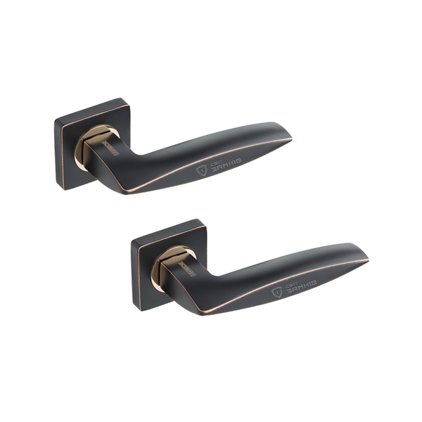 Комплект раздельных ручек французской ТМ "GAVROCHE" - это отличное качество и долговечная работа. Ручки цельнолитые, тяжелые, изготовленные из цинкового сплава. Цветовой оттенок наносится специальным методом - гальваники. Это гарантирует срок службы покрытия в течении 60 месяцев - официальная гарантия производителя. Удобная форма нажимной части сделает пользование приятным. Современная модель ручки на квадратной розетте подойдет к дверному полотну с прямыми линиями. В данной модели интересное сочетание цветов - черный с золотой патиной. Золотая патина, нанесенная на грани, добавляет ручке винтажности. Рекомендуем устанавливать на полотна в цвете венге, дуб, золотой дуб и другие коричневые оттенки. В ручках такого типа не видно отверстий для крепления, они прикрываются внешней крышкой розетты. Ручка просто и легко монтируется. В зависимости от установленного замка и толщины дверей, ручку можно зафиксировать на стяжные винты или саморезы.
