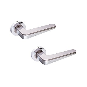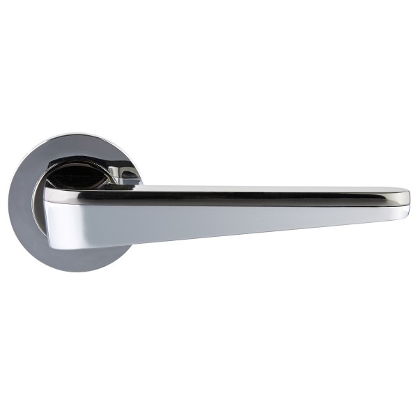 Комплект раздельных ручек французской ТМ "GAVROCHE" - это отличное качество и долговечная работа. Ручки цельнолитые, тяжелые, изготовленные из цинкового сплава. Цветовой оттенок наносится специальным методом - гальваники. Это гарантирует срок службы покрытия в течении 60 месяцев - официальная гарантия производителя. Удобная форма нажимной части сделает пользование приятным. Круглая основа ручки хорошо смотрится на полотнах с плавными изогнутыми линиями. Основа ручки выполнена в блестящем хроме, а нажимная часть - со вставкой в цвете гриффит. Рекомендуем выбрать именно эту модель, если стиль Вашего помещения - модерн. В ручках такого типа не видно отверстий для крепления, они прикрываются внешней крышкой розетты. Ручка просто и легко монтируется. В зависимости от установленного замка и толщины дверей, ручку можно зафиксировать на стяжные винты или саморезы.