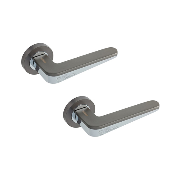Комплект раздельных ручек французской ТМ "GAVROCHE" - это отличное качество и долговечная работа. Ручки цельнолитые, тяжелые, изготовленные из цинкового сплава. Цветовой оттенок наносится специальным методом - гальваники. Это гарантирует срок службы покрытия в течении 60 месяцев - официальная гарантия производителя. Удобная форма нажимной части сделает пользование приятным. Круглая основа ручки хорошо смотрится на полотнах с плавными изогнутыми линиями. А трендовую комбинацию цветов - графит и хром - рекомендуем использовать в помещениях в стиле хай-тек или модерн. В ручках такого типа не видно отверстий для крепления, они прикрываются внешней крышкой розетты. Ручка просто и легко монтируется. В зависимости от установленного замка и толщины дверей, ручку можно зафиксировать на стяжные винты или саморезы.