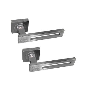 Ручки на розетте торговой марки KEDR. Это практический товар по доступной цене. Материал изготовления - алюминиевый сплав. Нажимная часть удобная и приятная в использовании. Покрытия методом гальваники, гарантирует сохранность внешнего вида ручки в течение 36 месяцев. Приятный цвет - сатин / хром - прекрасно дополняет светлый интерьер. Монтируются такие ручки без особого труда. На дверном полотне имеют аккуратный вид, поскольку отверстия для крепления прикрыты внешней крышкой розетты.