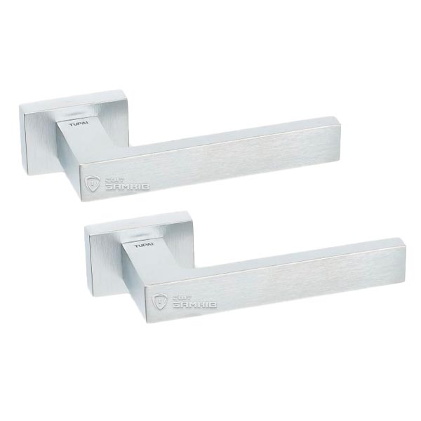 Ручки на розетте португальского производства TUPAI. Дверная фурнитура сделана с учетом экологических европейских стандартов. Изготавливается из латуни по современным технологиям на фабрике в Португалии. Современный цвет - хром матовый - удачный выбор для помещения в спокойных серых тонах. Покрытие наносится специальным методом гальваники в несколько слоев. Благодаря этому ручки будут выглядеть как новые до 24 месяцев. Прямоугольная форма розетты в стиле хай-тек прекрасно подойдет для интерьера с современными прямыми линиями.