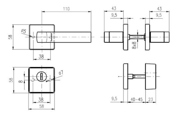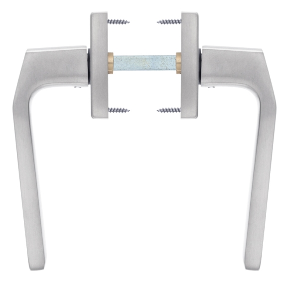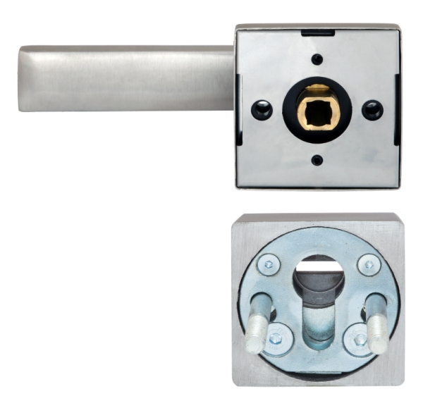 Чешские ручки на квадратной розетте с протектором ROSTEX специалисты относят к защитной дверной фурнитуры 3-го класса безопасности. Выражается это в надежной конструкции, которая обеспечивает защиту сердцевины от вандальных видов взлома, в частности от высверливания/перелома пополам, выбивания и т.д. Материал изготовления - нержавеющая сталь, что дает возможность их использования при различных погодных условиях. Дизайн в цвете матовой нержавеющей стали как нельзя лучше подходит для современных минималистичных интерьеров как жилых помещений, так и офисных центров. Устанавливаются на входные металлические и деревянные двери толщиной от 38 до 45мм. Если дверь толще, то дополнительно избираются удлиняющие наборы. Для монтажа используются стяжные винты, для которых нужно чтобы в замке были сквозные отверстия. Отмечаются долговечностью и длительным временем работы.