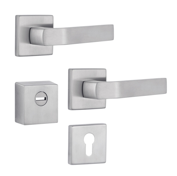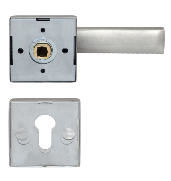 Ручки на розетте с протектором ROSTEX Quadrum нержавеющая сталь матовая