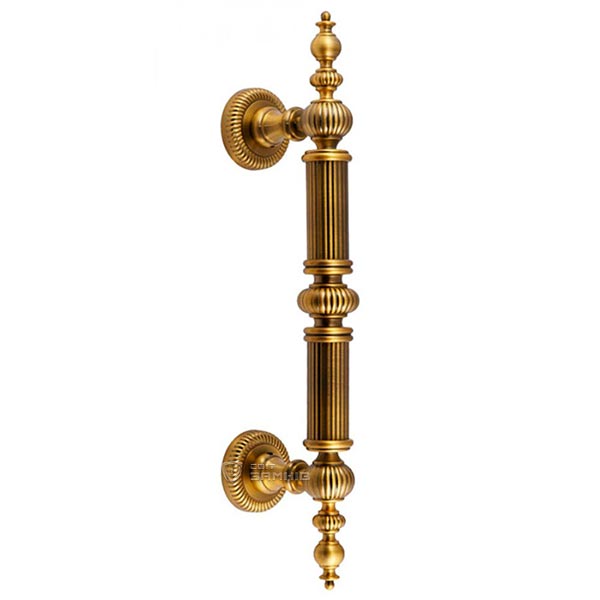 Ручка скоба торговой марки TRION. Представляет из себя элегантную дверную фурнитуру по доступной цене. Ручки цельнолитые из цинкового сплава, благодаря чему они прочные и устойчивые к коррозии. Таким образом их внешний вид будет сохранен от стирания более 60 месяцев. Фурнитура такого типа удобна в использовании и имеет длительный срок эксплуатации. Популярный цветовой оттенок - кофе - уместно сочетается с помещениям в темных кофейных оттенках. Изысканный дизайн в классическом стиле гармонично дополнит дверное полотно с различными орнаментами и узорами, а также довершит интерьер с элементами классики. Основным техническим критерием при выборе является длина ручки и расстояние между креплениями. Важно чтобы при установлении скобы, крепления разместились выше и ниже замка. Чаще всего ручки такого типа используют с замком "бочкой". Если ручка устанавливается только одна то она фиксируется на шурупы, которые прикрываются внешней розеттой. Если же ручки ставятся две - через дверное полотно делается сквозное отверстие, куда вставляется специальная шпилька с резьбой. На нее накручивается ручка и фиксируется гужонами на нижней и верхней розетте.