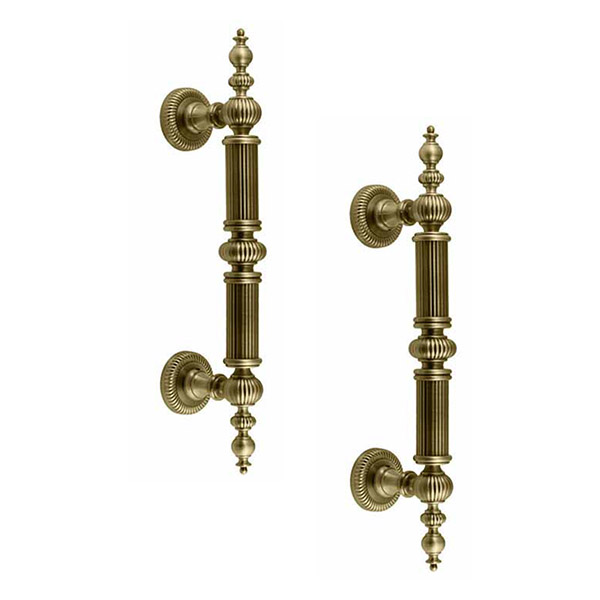 Ручка скоба торговой марки TRION. Представляет собой элегантную дверную фурнитуру за доступную цену. Ручки цельнолитые из цинкового сплава, благодаря чему они крепкие и устойчивы к коррозии. Таким образом, их внешний вид будет сохранен от стирания более 60 месяцев. Фурнитура такого типа удобна в использовании и имеет длительный срок эксплуатации. Популярный цветовой оттенок – бронза – уместно сочетается с помещением в темных кофейных оттенках. Изысканный дизайн в классическом стиле гармонично дополнит дверное полотно с разнообразными узорами и орнаментами, а также завершит интерьер с элементами классики. Основным техническим критерием при выборе является длина ручки и расстояние между креплениями. Важно, чтобы при установке скобы, крепления разместились выше и ниже замка. Чаще ручки такого типа используют с замком "бочкой". Если ручка монтируется только одна, то она фиксируется на шурупы, которые прикрываются наружной розеттой. Если же ручки ставятся две – через дверное полотно делается сквозное отверстие, куда вставляется специальная заколка с резьбой. На нее накручивается ручка и фиксируется гужонами на нижней и верхней розете.