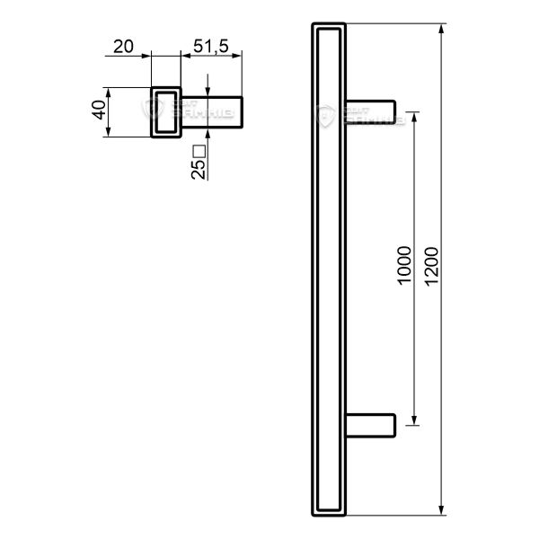 Описание Ручки скобы ABARO Sydney 90° L:1200 X:1000 W: 40*20mm BM черный мат. (комплект)