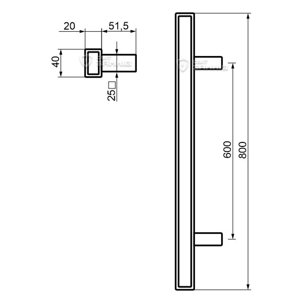 Описание Ручки скобы ABARO Sydney 90° L:800 X:600 W: 40*20mm BM черный мат. (комплект)