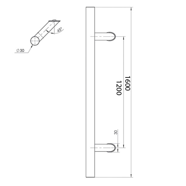 Описание Ручки скобы ABELIX Aspen L: 1600mm X: 1200-45° 30mm SS нерж. сталь (комплект)