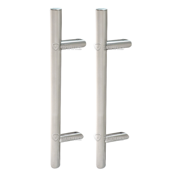 Данные ручки скобы целесообразно ставить на входную дверь помещений с большой проходимостью людей – торговых центрах, ресторанах, магазинах, гостиницах и т.д. Они подходят для полотен из металлопластика, алюминия и стекла. В использовании ручки удобны: чтобы открыть дверь достаточно потянуть за саму скобу. Длина ручки составляет 500 мм, расстояние между креплениями – 300 мм. Диаметр профиля трубы – 30 мм. Это главные технические аспекты при выборе.