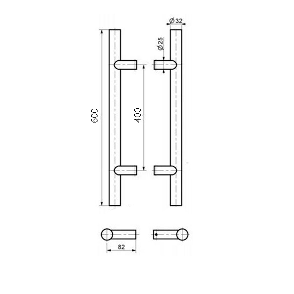 Ручки скобы MEDOS SS 600/400.90 (комплект) нержавеющая сталь