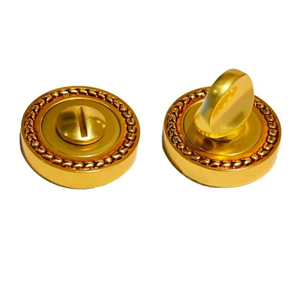 Итальянский вороток LINEA CALI. Изготовлен из латуни, приятный на ощупь и надежный в использовании. Подбирается только к конкретной ручке, чтобы сохранить соотношение по цвету и форме розетты. Гарантирует Вам быстрое и удобное замыкания изнутри. Нежный цвет - французское золото - хорошо сочетается с интерьером в светло-золотых оттенках. Покрытие наносится методом гальваники в несколько слоев, что гарантирует сохранность внешнего вида воротка в течение 120 месяцев. Запатентованная технология «Click-Clаck» позволит установить эту модель быстро и без особого труда.