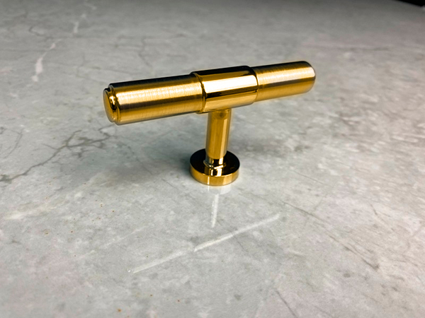 Данная ручка для мебели изготовлена из крепкой латуни, поэтому прослужит максимально долго. Будет способствовать этому также специальное гальваническое покрытие, предотвращающее износ. Это станет особенно актуальным при использовании ее в качестве фурнитуры для мебели кухни. Оригинальное исполнение в виде Т-образной ручки кноба в цвете полированной и матовой латуни отлично дополнит ящики и мебель в помещениях с подобными оттенками, содержащими округлые и прямолинейные элементы. Крепится накладным способом с помощью комплектного винта. Монтаж не потребует особых навыков и довольно прост.