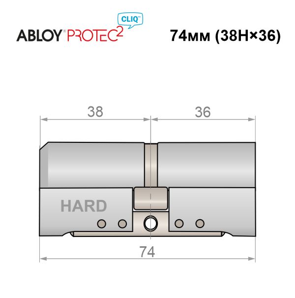 Купить цилиндр ABLOY Protec2 CLIQ 74 (38H*36) (H - закаленная сторона) матовый хром в розницу и оптом можно на нашем сайте.