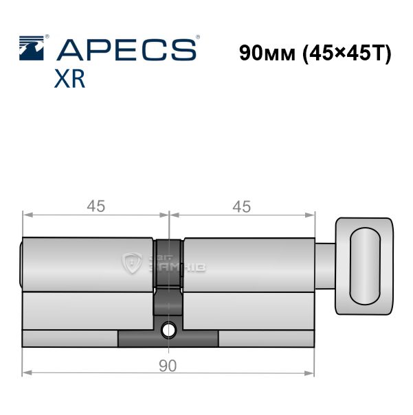 Купить цилиндр APECS XR 90T (45*45T) никель сатин в розницу и оптом можно на нашем сайте.