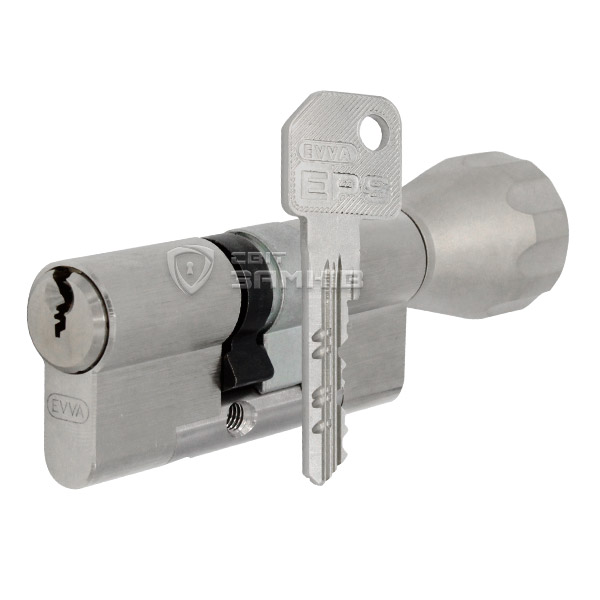 Цилиндр EVVA EPS комплектуется воротком "никель сатин" под цвет корпуса.
