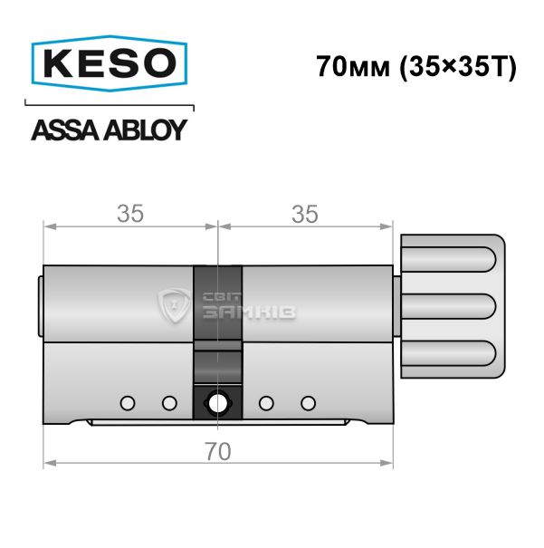 - Цилиндр KESO 8000 70T (35*35T) никель сатин 3 ключа ⭐