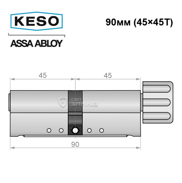 - Цилиндр KESO 8000 90T (45*45T) никель сатин 3 ключа ⭐
