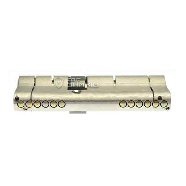 В латунном корпусе цилиндра установлены специальные твердосплавные штифты и заглушки, которые находятся на кодирующих пинах.