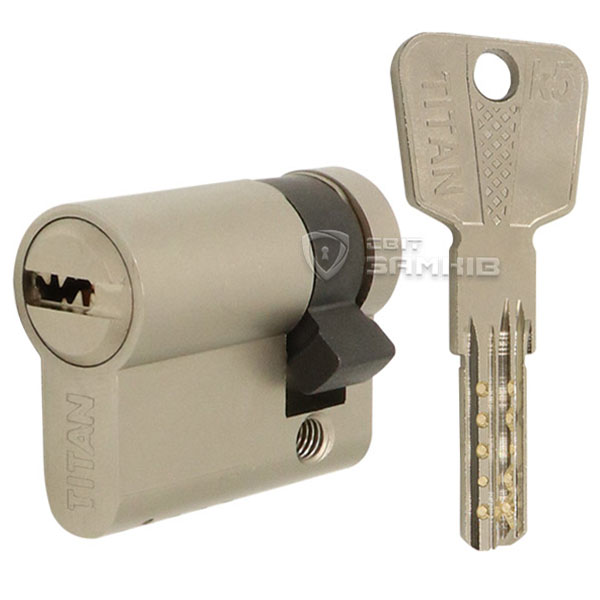 Цилиндр половинка TITAN K5 75 (65*10) никель сатин 3 ключа
