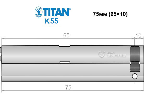 Описание Цилиндр половинка TITAN K55 75 (65*10) никель сатин 3 + 1 ключей