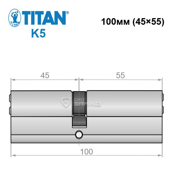 Описание Цилиндр TITAN K5 100 (45*55) никель сатин