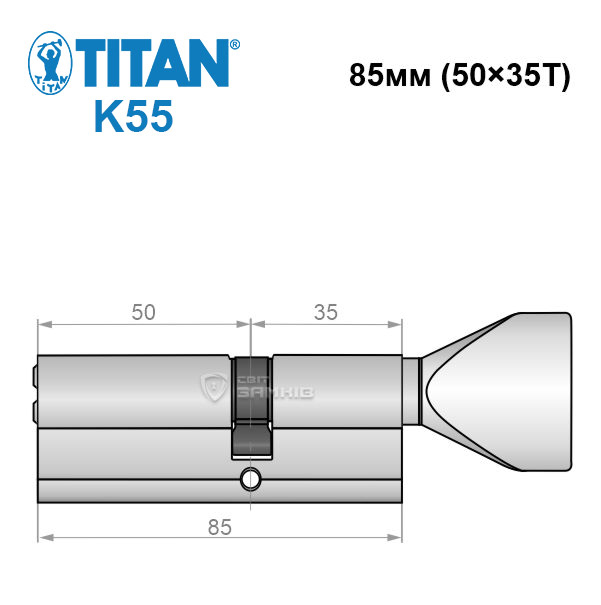 Купить цилиндр TITAN K55 85Т (50*35T) никель сатин в розницу и оптом можно на нашем сайте.