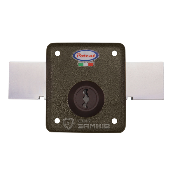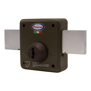 POTENT 255 – это итальянский замок с одним сплошным прямоугольным ригелем. Устанавливается накладным способом на дверное полотно. Используется на входной деревянной и металлической двери квартиры или дома. Также его часто выбирают для монтажа в гаражах или складских помещениях, где установить врезной замок нет возможности или это нецелесообразно.