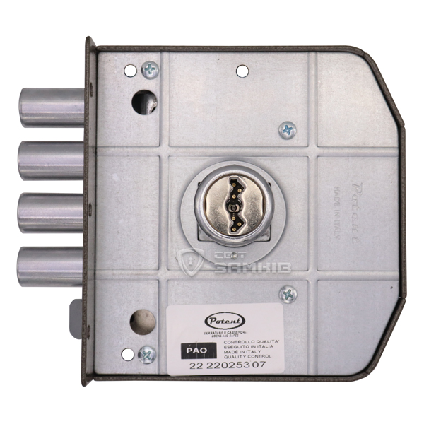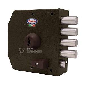 POTENT 440 – это 4-ригельный итальянский замок. Устанавливается накладным способом на дверное полотно. Используется на входной деревянной и металлической двери квартиры или дома. Также его часто выбирают для монтажа в гаражах или складских помещениях, где установить врезной замок нет возможности или это нецелесообразно.