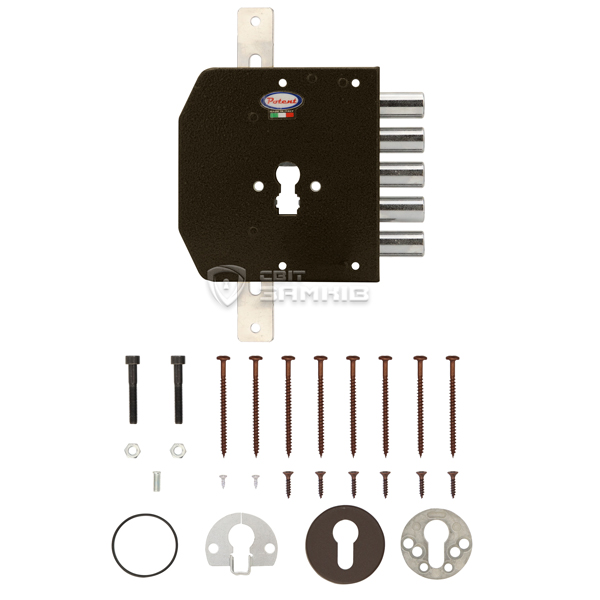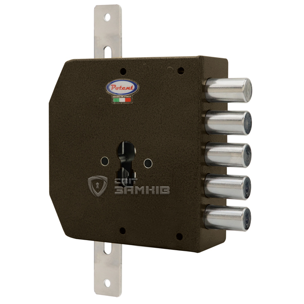 POTENT 495CE – это 5-ригельный итальянский замок. Устанавливается накладным способом на дверное полотно. Используется на входной деревянной и металлической двери квартиры или дома. Также его часто выбирают для монтажа в гаражах или складских помещениях, где установить врезной замок нет возможности или это нецелесообразно.