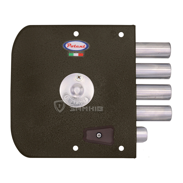 POTENT 910 – это 4-ригельный итальянский замок. Устанавливается накладным способом на дверное полотно. Используется на входной деревянной и металлической двери квартиры или дома. Также его часто выбирают для монтажа в гаражах или складских помещениях, где установить врезной замок нет возможности или это нецелесообразно.