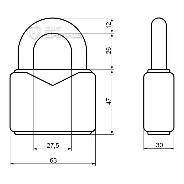 Замок накладной ПЕНЗА ЗНЗА 1 (BS60мм) 3 ключа (н)