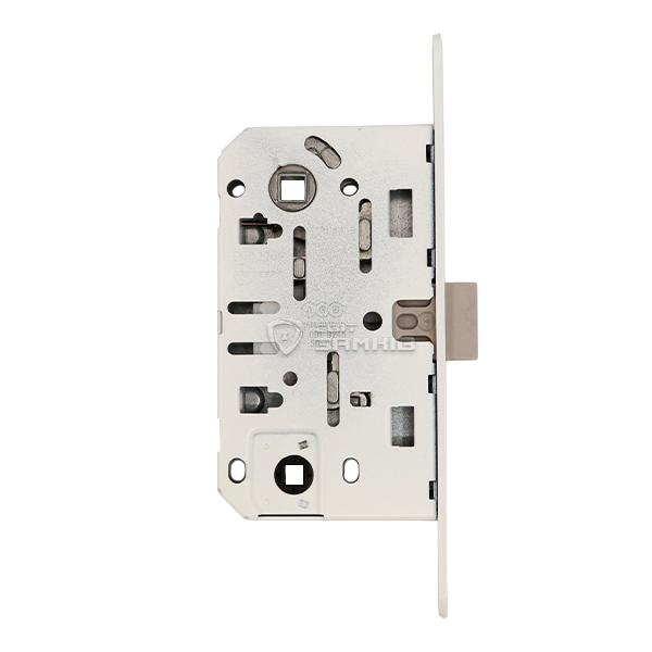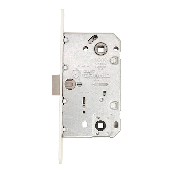 Замок серии Mediana Evolution - итальянская надежность и долговечность. Главное преимущество - тихая работа, замок не щелкает при закрывании. Полиамидный язычок делает этот замковый механизм бесшумным, а значит он идеально подходит для установки на межкомнатные двери (детская комната, спальня, ванная, туалет). Под отверстием для ручки есть место для комплектации воротком. Двери будут закрываться поворотом "барашки".