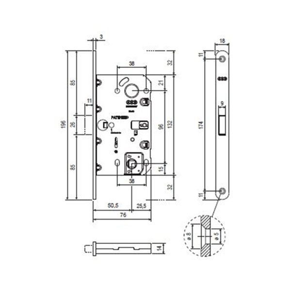 В открытом состоянии не имеет выступов на лицевой стороне, благодаря тому, что язычок втягивается в корпус. Торцевая планка имеет стандартные размеры 196х18 мм. Корпус изготовлен из стали и имеет сквозные отверстия для стяжных винтов крепления ручек. Это идеальное решение для установки в дверные полотна ванной, туалета или спальни. В цвете “хром матовый” идеально дополнит двери и ручки соответствующих серых оттенков.