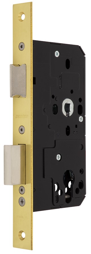 Израильский производитель MUL-T-LOCK известен на рынке качеством своей дверной фурнитуры. Данная модель врезного замка замка устанавливается на входную дверь из металла и дерева в качестве основного. Управляется ручками и сердцевиной стандарта EURO DIN. Она в комплект не входит и докупается отдельно в зависимости от ваших потребностей. Замок оснащен одним прямоугольным стальным ригелем. Его полный выход составляет 21 мм. Для защиты от перепиливания оснащен закаленной вставкой. Благодаря реверсивному язычку замок подходит как для лево, так и правосторонних дверей.