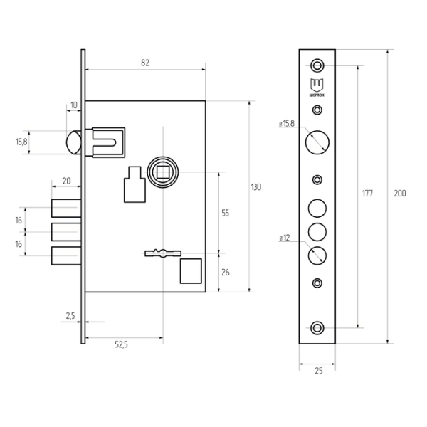 • Размеры замка –82х130 мм.