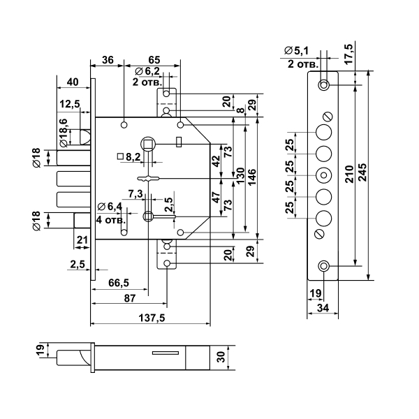 • 4 цилиндрических ригеля диаметром 18 мм.