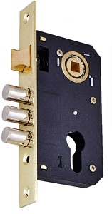 Замок может устанавливаться как на внешние так и на внутренние двери. Благодаря простому механизму и реверсивному язычку, замок может устанавливаться как на правые так и на левые двери. При повороте ключа высовываются три ригеля, язычок в свою очередь может свободно двигаться при нажатии на ручку, что увеличивает срок службы замка.